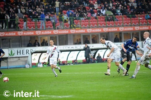 entra Zalayeta. Al 1' Inter subito in attacco, con Milito. Al 7' arriva