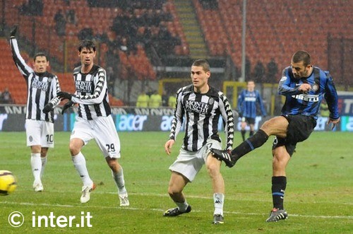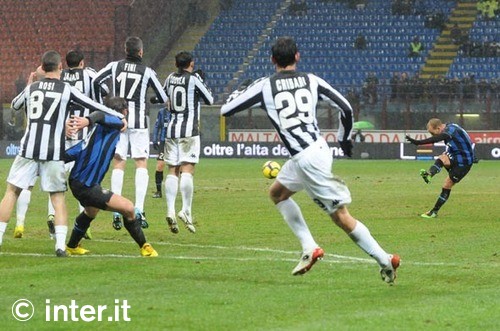di Vergassola, il capitano bianconero sfrutta l'incertezza di Maicon