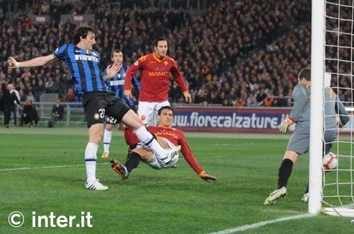 Marcatori: 17' pt De Rossi, 21' st Milito, 28' st Toni Roma: Julio Sergio, Cassetti, Burdisso, Juan, Riise, Perrotta, Pizarro, De Rossi (29' st Brighi), Menez (23' st Taddei), Toni, Vucinic (41' st Totti). A disposizione: Doni, Mexes, Tonetto, Baptista. Allenatore: Claudio Ranieri Inter: Julio Cesar, Maicon, Lucio, Samuel, Zanetti, Stankovic (14' st Pandev), Cambiasso (32' st Chivu), Thiago Motta (32' st Quaresma), Sneijder, Milito, Eto'o. A disposizione: Toldo, Cordoba, Materazzi, Muntari. Allenatore: José Mourinho Arbitro: Emidio