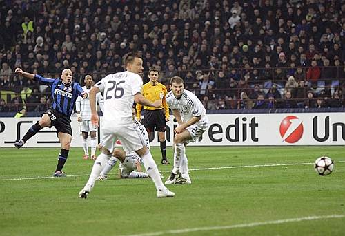 mette la palla al centro dell'area, finta di Sneijder, sfera che giunge