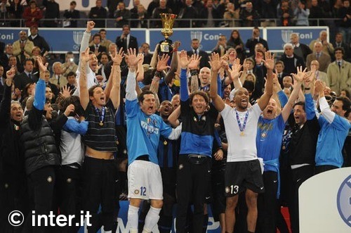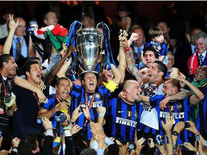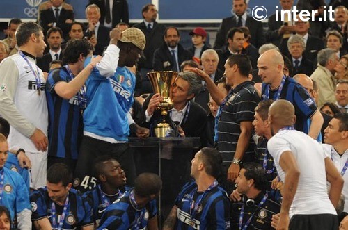 | Stagione veramente fantastica, stagione che resterà nella storia, infatti l'Inter riesce nell'impresa, unica squadra Italiana, a vincere le tre competizioni più importanti della stagione: Coppa Italia, Campionato e Coppa dei Campioni. In Campionato, per il terzo anno consecutivo l'Inter vince lo scudetto dopo aver pareggiato alla prima giornata. Nell'ordine, Udinese (2007), Sampdoria (2008) e Bari (2009). Tre 1-1 di fila, di cui due in casa. E' il 23 agosto e l'Inter che impatta con il neopromosso Bari a San Siro non è la stessa che chiuderà la stagione: va in vantaggio con un rigore di Eto'o, si fa raggiungere da Kutuzov e rischia addirittura il tracollo. C'è ancora Vieira, che poi andrà al Manchester City, gioca Quaresma, poi finito in naftalina, e nel pre-campionato bisogna segnalare la sconfitta nella Supercoppa Italiana contro la Lazio (1-2 a Pechino). Mancano otto giorni alla chiusura del mercato e Mourinho sa che deve fare qualcosa. Arriva Sneijder e cambia tutto. L'olandese esordisce nel derby dopo la pausa per la Nazionale e sembra vestire nerazzurro da una vita. L'Inter schianta 4-0 il Milan, lo scavalca in classifica e inizia a correre: Parma, Cagliari e Napoli sono le vittime della marcia di Milito e compagni. Galoppa forte, all'inizio del campionato, anche la Samp; lo scontro diretto a Marassi del 26 settembre ha il sapore della rivoluzione. Vittoria dei blucerchiati 1-0 con gol di Pazzini e sorpasso in vetta. Nel frattempo è iniziata anche la CHAMPIONS LEAGUE e nel girone di qualificazione l'Inter inizia con tre pareggi consecutivi, Barcellona e Dinamo Kiev in casa, Rubi Kazan in trasferta. In Campionato comunque dura poco la gloria sampdoriana. Gli uomini di Mourinho ripartono di slancio con cinque vittorie consecutive. Anche di quelle roboanti, come il 5-0 al Genoa (gol al volo di Stankovic da centrocampo) e il 5-3 al Palermo dopo essere stati in vantaggio 4-0. Il posticipo del 12° turno vede l'Inter frenare in casa contro un'avversaria in netta crescita dopo le difficoltà di inizio stagione: è la Roma, che va in vantaggio a San Siro ma si fa riprendere da un super gol di Eto'o. Il distacco tra le due squadre è di 13 punti, dopo questa partita. Nel frattempo è giunta la prima vittoria in CHAMPIONS LEAGUE in quel di Kiev e la classifica del girone incomincia a farsi interessante. In campionato altre due vittorie, Bologna e Fiorentina, prima del match più illusorio della stagione. Juve-Inter, mai banale, diventa per una sera l'apoteosi di Ciro Ferrara (poi esonerato): è 2-1 a Torino, decide Marchisio, ma la partita è brutta e Mourinho viene espulso. Nel frattempo in CHAMPIONS LEAGUE è giunta la prima sconfitta a barcellona e per superare il turno bisogna vincere, a Milano, contro il Rubin Kazan: vittoria che giunge puntuale e qualificazione negli ottavi dove si dovrà affrontare il Chelsea di Carlo Ancelotti. In Campionato Atalanta-Inter del weekend successivo vede un pari che sembra rappresentare un calo dei nerazzurri, comunque nettamente in testa. Ma il 2009 si chiude con la vittoria 1-0 sulla Lazio nel gelo milanese. Stesso risultato, alla ripresa, a Verona contro il Chievo: decide Balotelli. Frattanto è iniziato anche il torneo della Coppa Italia e l'Inter ha eliminato negli ottavi il Livorno con il punteggio di 1 a 0. In campionato continua il cammino in testa dei nerazzurri ed è il Siena, ultimo e derelitto, la squadra che mette più in crisi i futuri campioni d'Italia. L'ultima d'andata è una partita a dir poco folle: i toscani a 1' dalla fine sono avanti 3-2 a San Siro prima che una punizione di Sneijder e un sinistro di Samuel ribaltino la situazione. Segnali inequivocabili: chi può fermare l'Inter anche quando sembra spacciata? La risposta è "l'Inter stessa". Perché i nerazzurri, dei successivi 10 incontri, ne vinceranno solo tre. Il derby (2-0, in nove contro undici, a segno anche il nuovo arrivato Pandev), contro il Cagliari e a Udine. In mezzo, tanti pareggi, il tonfo clamoroso di Catania e il cosiddetto "caso Balotelli", che a un certo punto finisce in prima pagina più dei risultati. In CHAMPIONS LEAGUE il cammino è entusiasmante: fatto fuori il Chelsea con una doppia vittoria (2 a 1 a Milano e 1 a 0 a Londra), nei quarti sono i russi dello CSKA Mosca che vengono eliminati con un doppio 1 a 0, qualificazione per le semifinali dove gli avversari sono i campioni del mondo del Barcellona. Anche in coppa Italia il cammino è spedito e dopo aver eliminato la Juventus nei quarti e la Fiorentina in semifinale, ci spetta di disputare la finale contro la Roma il 5 maggio a Roma e la data non ci rammenta certo dei bei ricordi....In campionato al giro di boa il Milan, secondo, era distante 8 punti. Dopo la sconfitta di Catania (28/a giornata) lo scarto è di un punto con rischio di sorpasso, scongiurato poi, la domenica dopo. In compenso risale, e tanto, la Roma, che diventa la vera antagonista dell'Inter a partire dal 31° turno. All'Olimpico lo scontro diretto premia i giallorossi, che vincono 2-1 con rete decisiva di Toni. Il sorpasso, questo sì, è nell'aria; e si materializza due domeniche dopo. Gli uomini di Mourinho frenano a Firenze, 2-2, mentre la Roma piega l'Atalanta e vola in testa a +1 sui nerazzurri. La giornata successiva è da brividi. L'Inter, impegnata di venerdì per via degli impegni di Champions, risolve la pratica Juve solo nel finale con una magia di Maicon e una zampata di Eto'o. A Roma, nel posticipo, è di scena il derby; la Lazio va in vantaggio, sbaglia un rigore e poi si fa rimontare da una doppietta di Vucinic. L'entusiasmo nella Capitale, però, si spegne nel giro di sette giorni; all'Olimpico la Sampdoria vince 2-1, riportando gli uomini di Ranieri al secondo posto. perché, nel frattempo, l'Inter aveva già abbattuto l'Atalanta 3-1. Incombe nel frattempo la semifinale di CHAMPIONS LEAGUE, contro il Barcellona, che viene brillantemente superata con due partite perfette, vittoria a San Siro per 3 a 1 e sconfitta 